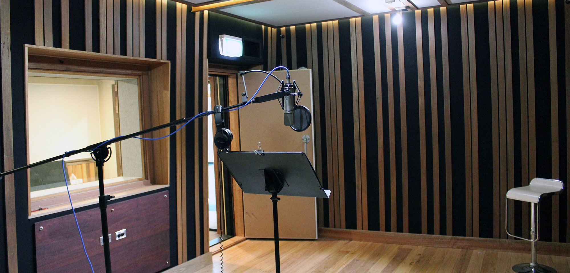 High quality acoustically treated Live Sound Recording Studio caters for all of your needs including ADR, voiceovers, foley, music, bands and podcasts. Connected to our Abelton suite, the recording area has two rooms; one smaller for voice and single instrument and a larger area for foley, bands or ADR using the LED screen for lip sync.