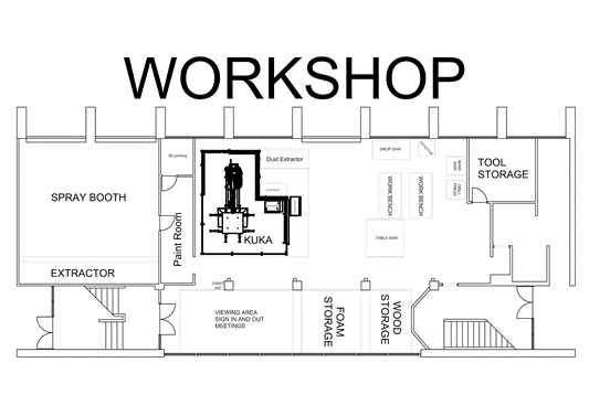 This workshop is not available for hire. It houses the KUKA robot which is an advanced machine for set production.